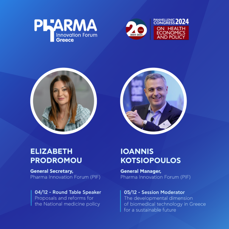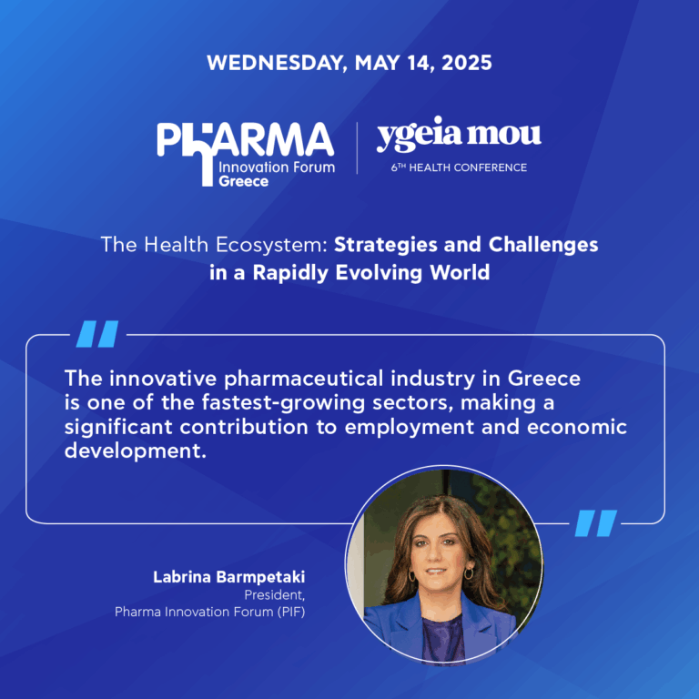 Labrina Barmpetaki, President of PIF: “Harnessing medical data is essential for a fair and sustainable pharmaceutical policy.” Through targeted interventions and a clear, strategic message, PhARMA Innovation Forum (PIF) actively participated in the 6th Health Conference organized by Proto Thema. Labrina Barmpetaki, joined the panel discussion entitled “Shaping a National Pharmaceutical Policy: Prerequisites and Challenges.”…